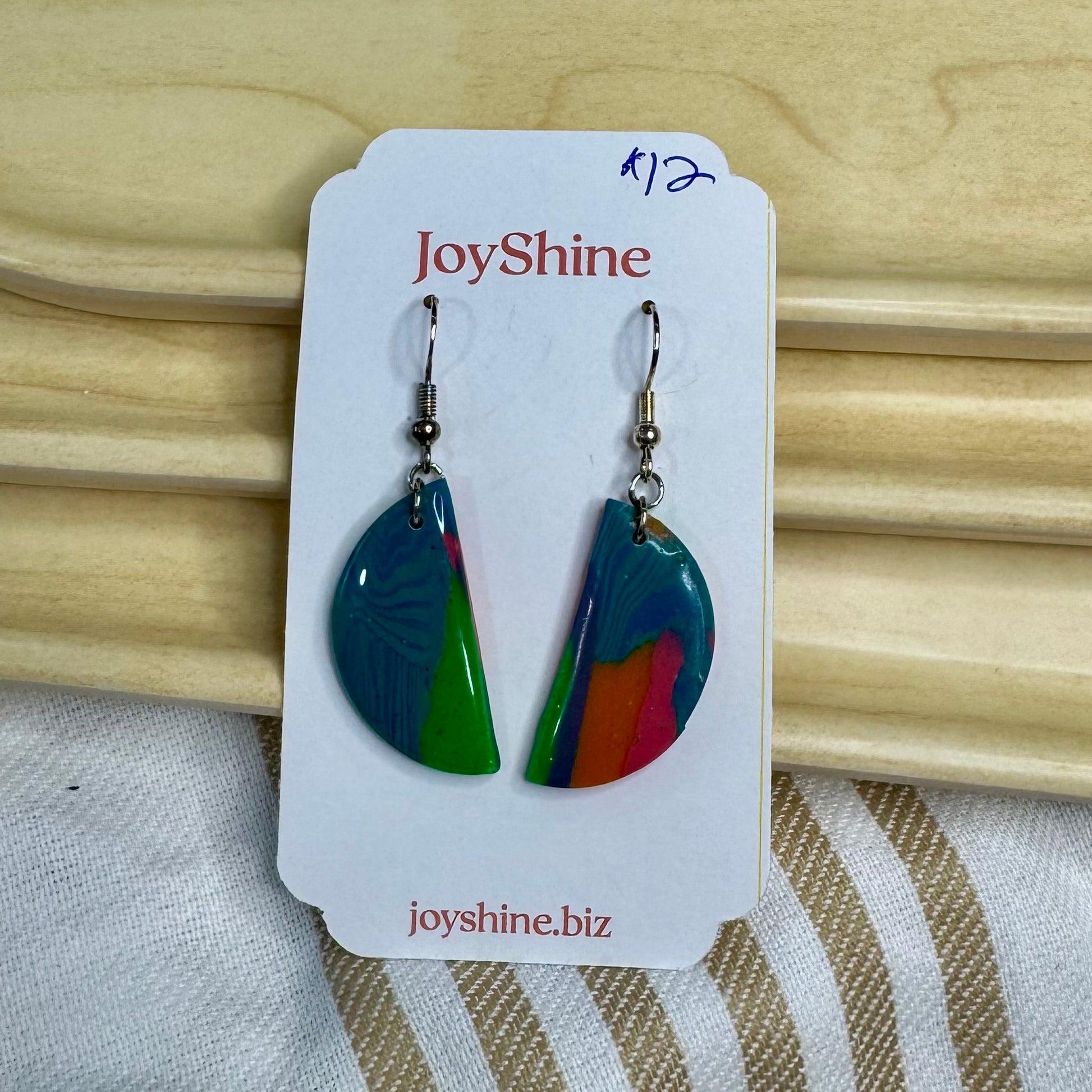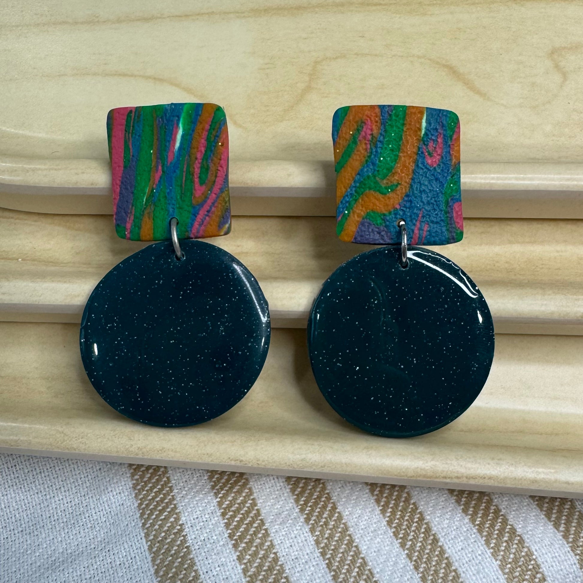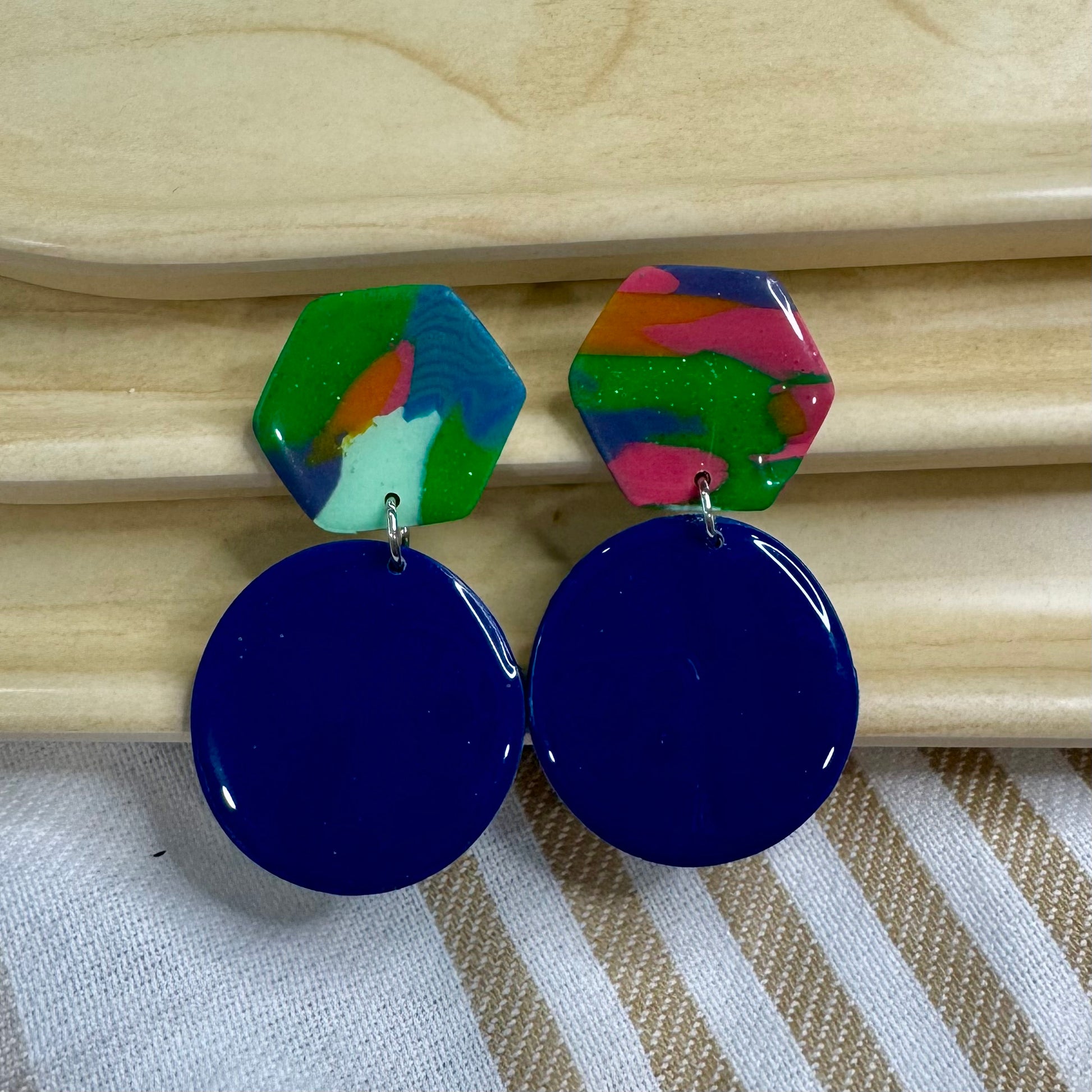 Bold, expressive, and full of joyful energy — the Electric Prism collection is a celebration of color and individuality. These earrings fuse sculptural forms with vivid rainbow-inspired marbling and rich jewel tones. Whether you're embracing your creativity or simply love to stand out, these earrings are wearable art that sparks conversation and connection. Each pair is one-of-a-kind, handmade with love and intention.
