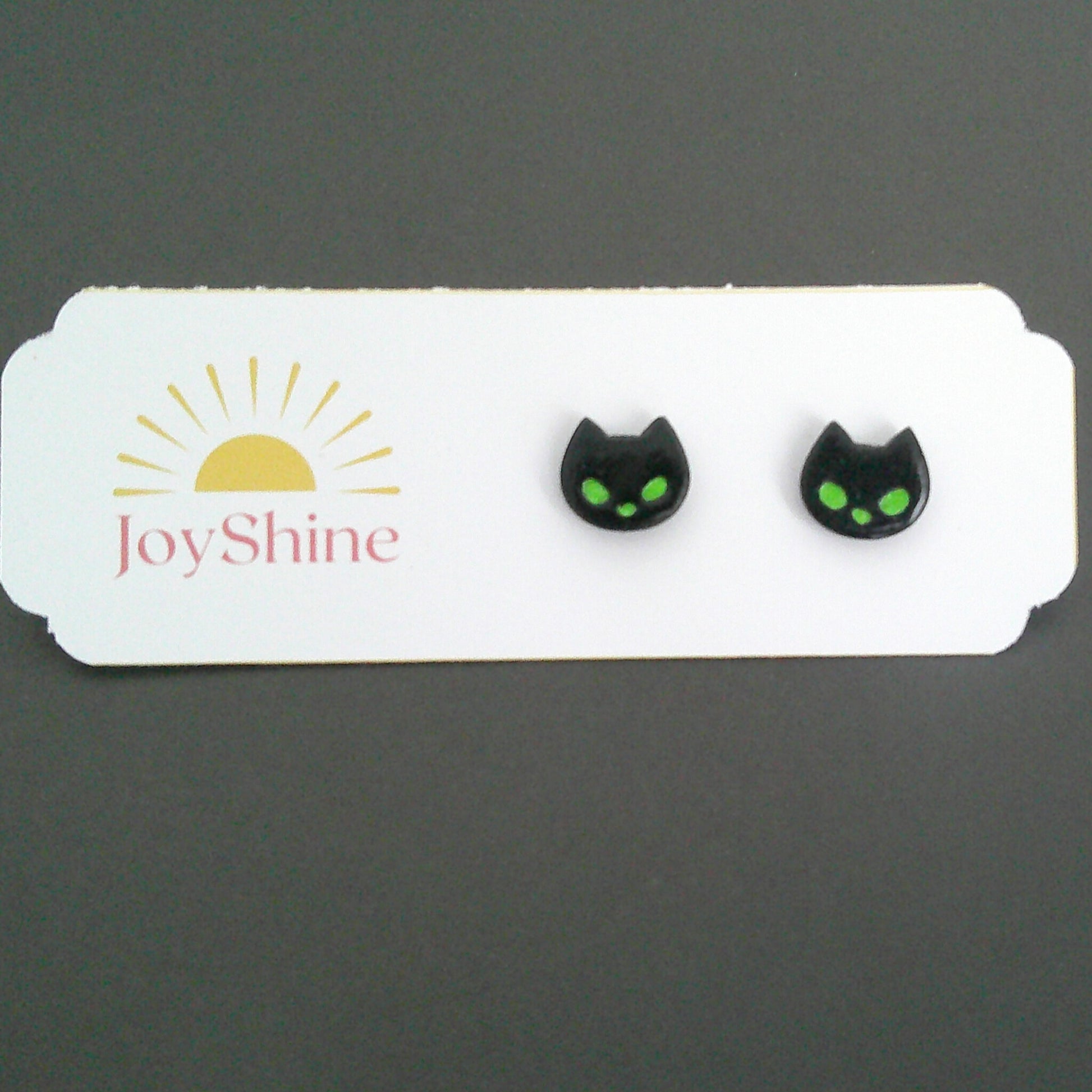 Peer into the darkness with these Haunting Hollow Cat studs — sinister black feline faces with piercing, glowing green eyes that seem to follow you wherever you go. These lightweight earrings bring a chilling, supernatural vibe perfect for those who embrace the eerie and the uncanny. Perfect for nights when you want to channel shadowy spirits and spine-tingling mystery, these studs are not for the faint of heart. Dare to wear the gaze that haunts the shadows.