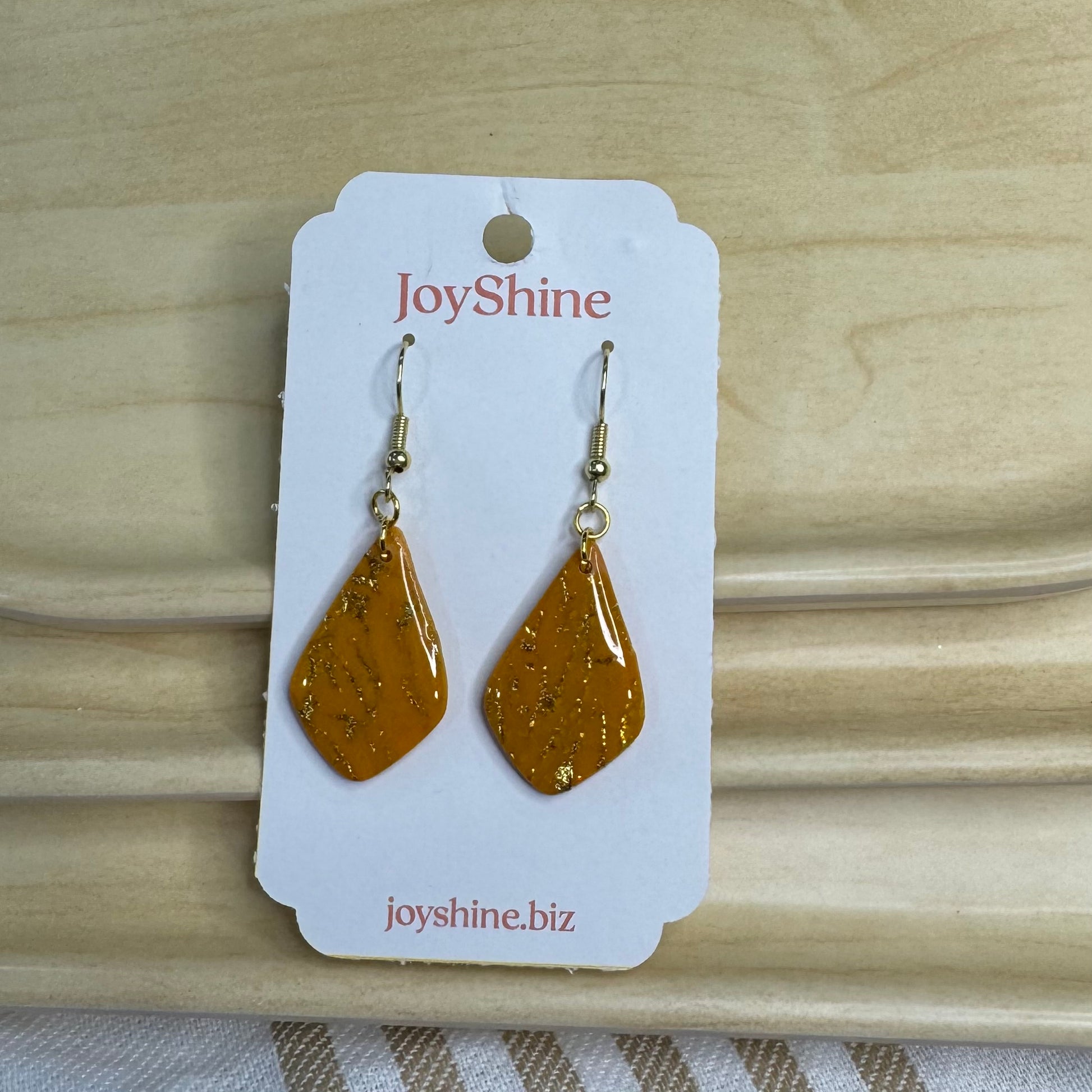 Ignite your style with the Solar Flare Earrings — a radiant burst of golden energy handcrafted to stand out. These bold, tapered earrings feature a vibrant amber-gold resin infused with shimmering flecks that catch the light like sunbeams. Their striking geometric shape adds a fierce, modern edge, while gold-tone hooks complete the glowing look.