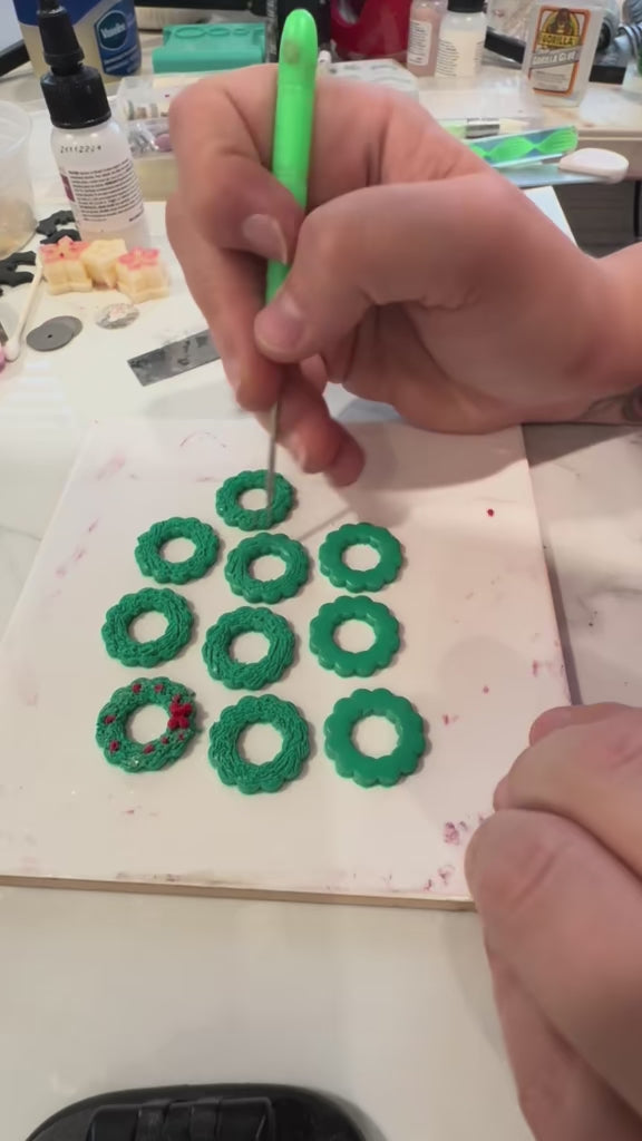 Ring in the holiday spirit with our Festive Wreath Wishes earrings — a charming pair that celebrates the season in handcrafted style. Each is handmade from polymer clay, sculpted into a miniature wreath design complete with playful detail and festive flair.